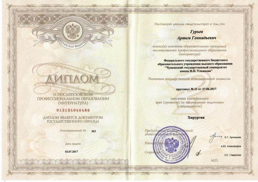 Гурьев Артем Геннадьевич Интернатура